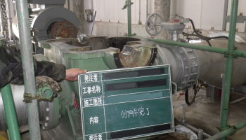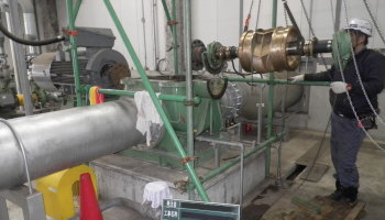 | 【整備前】 施工対象機の確認を行います。整備前の機器の状態を確認する為、試運転を行い、温度・電流・圧力・振動等を計測します。 |